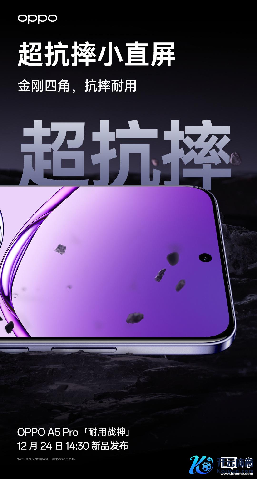 IT之家 12 月 22 日音讯,OPPO A5 Pro 手机将于 12 月 24 日 14:30 发布,新机选假寓中大圆相机模组狡计,搭载四曲柔边直屏,堪称“金刚四角,抗摔耐用”。