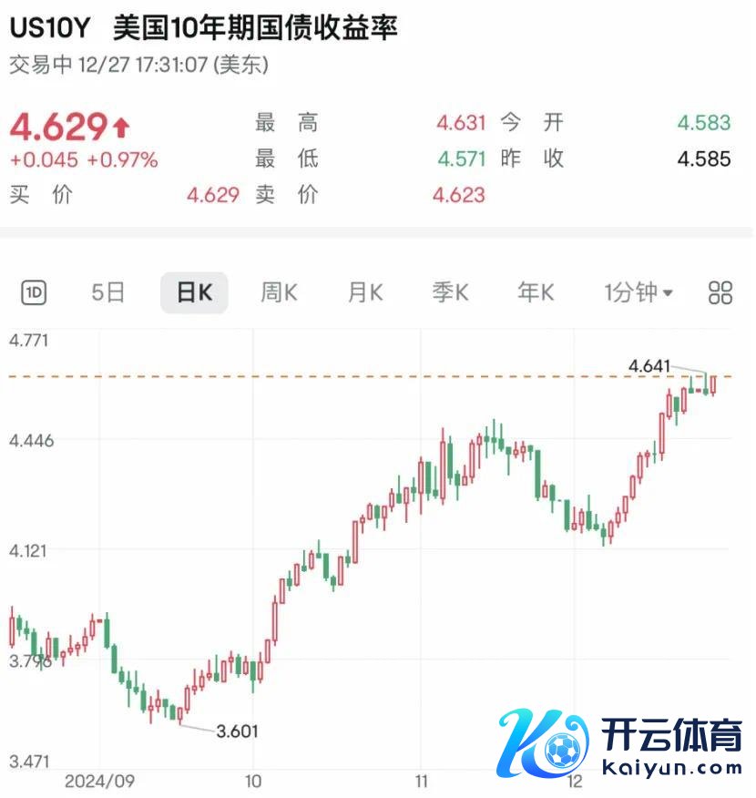 好意思债收益率本周上升对股市施压。周五,10年期好意思国国债收益率上升近1%,升至4.629%,接近七个月高点。12月于今,该收益率已累计上升逾40个基点,因阛阓预期2025年好意思联储将领受更为鹰派的计策。好意思联储下一次计策会议将在1月底召开,阛阓揣测届时利率将保抓不变。