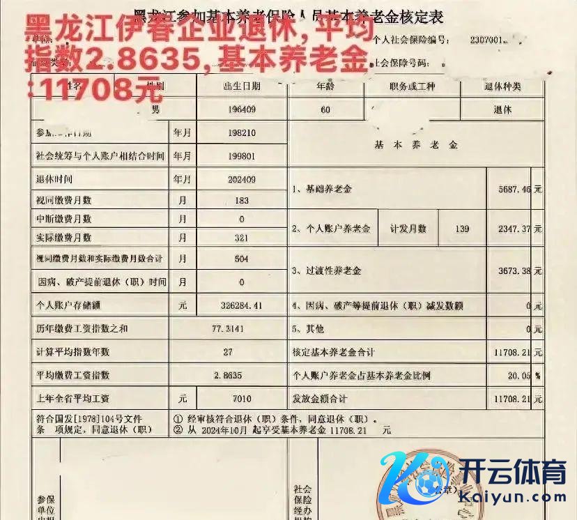 为了更具体地评释这小数,咱们不错通过一个例子来进行详备分析。假定有一个东谈主拔擢于1964年9月,并在1982年10月驱动参加责任。此东谈主推敲在2024年9月退休,届时年岁将达到60岁。从1998年1月起,其养老保障实行统账皆集模式。证据接洽数据,该东谈主的视同缴费月数为183个月,卓绝于15.25年;实质缴费月数则是321个月。将这两部分加在一齐,所有为504个月,折合42年的缴费本事。此外,结果退休时,其个东谈主账户中的储蓄总和为326,284.41元,而积年缴费工资指数之和达到了77.3141。基于这些信息,咱们不错假想出此东谈主的平均缴费指数笼罩了27年的本事跨度。